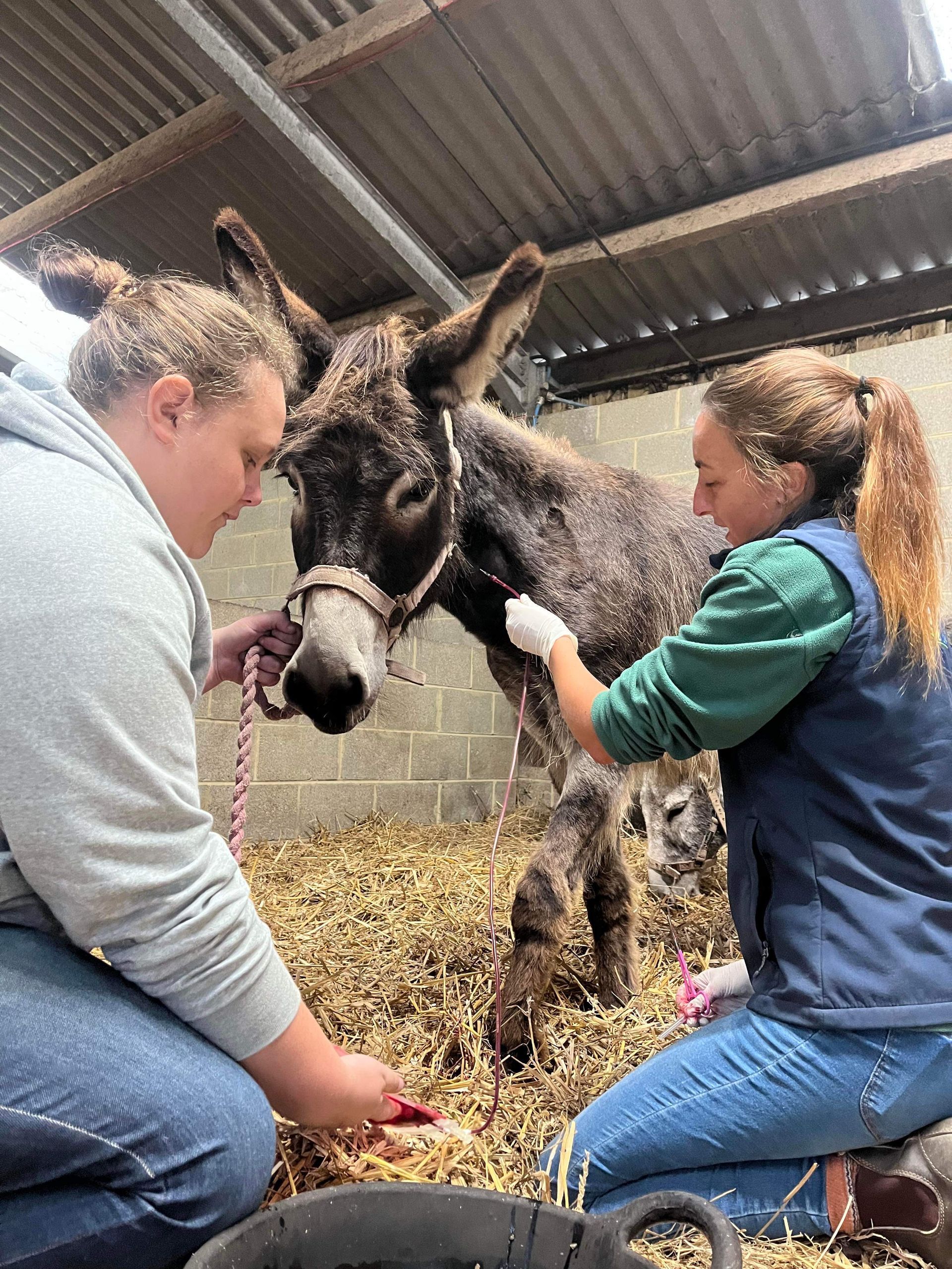 Again, time was crucial and we needed to get blood to Theo for his transfusion. Another two selfless team members, Farm Manager, Chloe, and Estate Manager, Nick, along with donkeys Leighton and Trevor made their way over on another ferry journey to donate blood and potentially save the life of Theo.