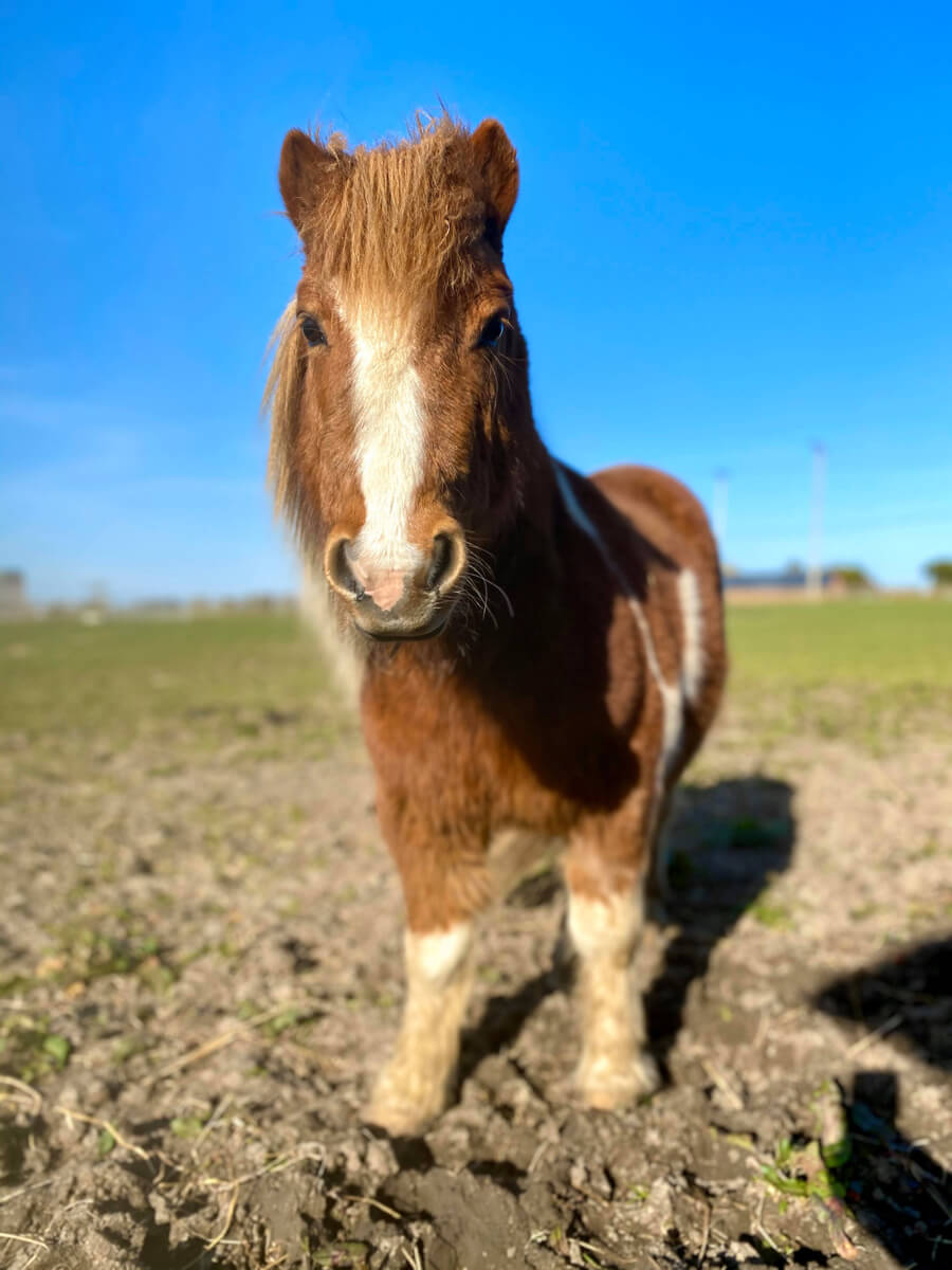 Trixie (the pony) arrived at the sanctuary with his friend Sam from Chale on the Isle of Wight. They have both been loaned out previously and were trained to pull a cart. Trixie (the pony) currently lives with Sam and Fudge, and they are a fun little trio. Trixie (the pony) is a friendly but timid pony. He can be cautious of people at first, but is very sweet when he warms up to people.