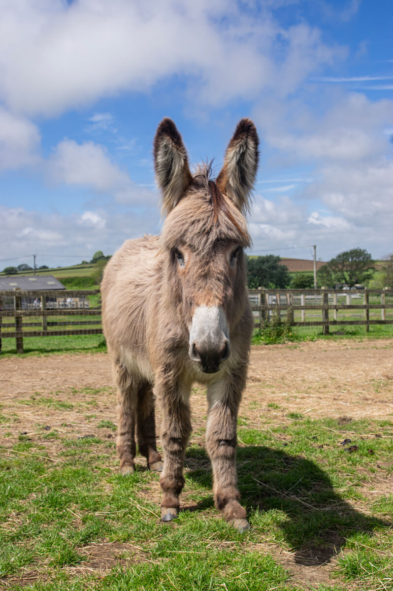 Autumn arrived in December 2023 along with 3 others including her mum, Popcorn. As Autumn is still so young, our team felt that it was best for her, after confirming that she was not bonded with her mother, to integrate her into the Euros herd. This herd has all the other very young donkeys to make friends and play with. She enjoys the company of her peers!