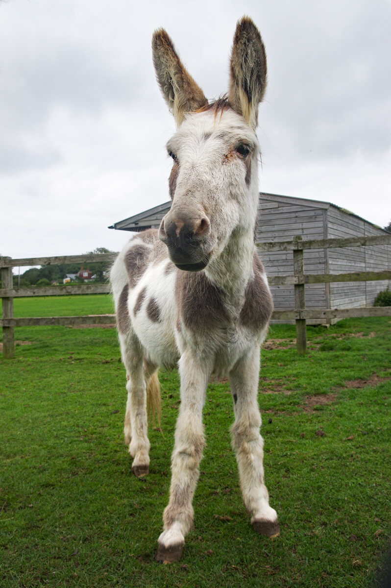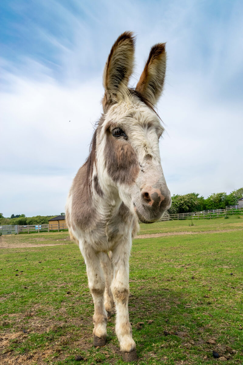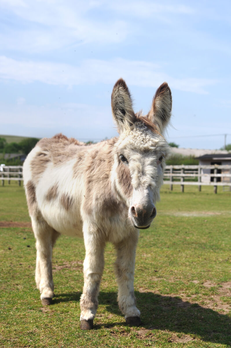 Once met, never forgotten! Buttons is a brown and white donkey with fluffy ears who arrived at the sanctuary in 2019. He had previously been used for breeding. A total charmer, he is a fun, and somewhat loud donkey who’s full of character!