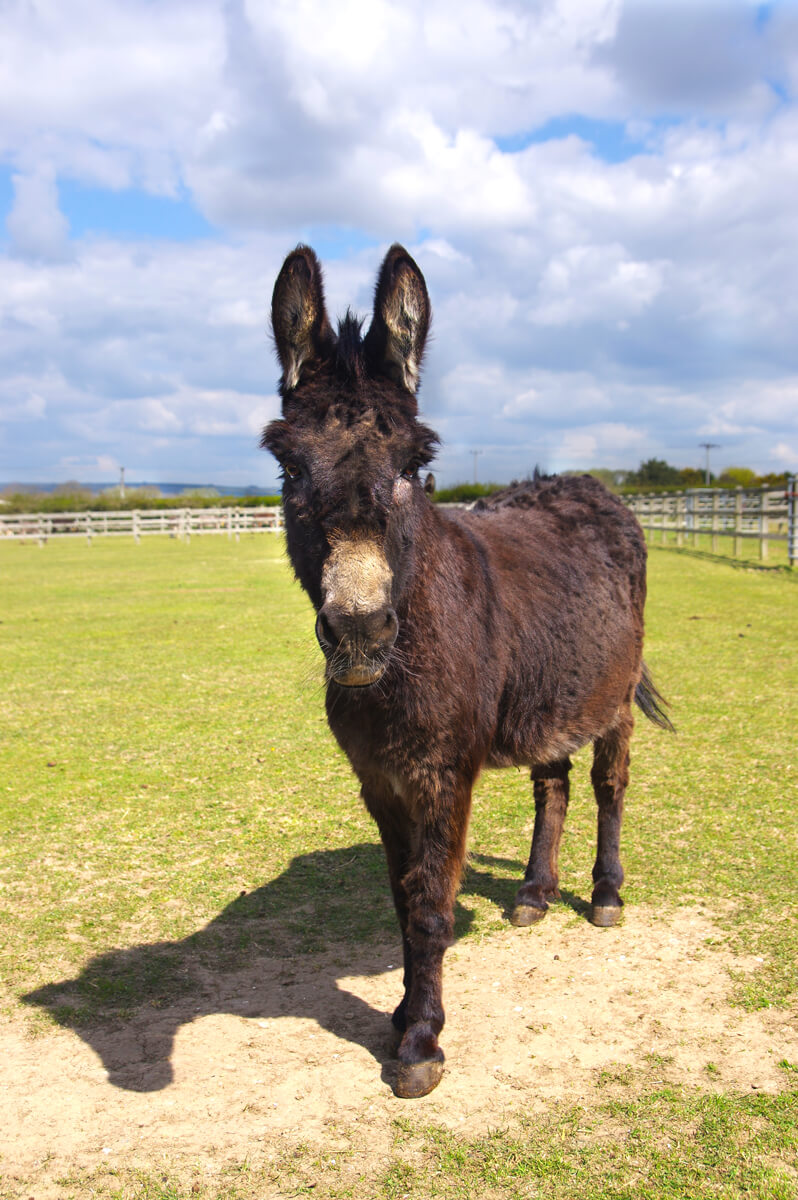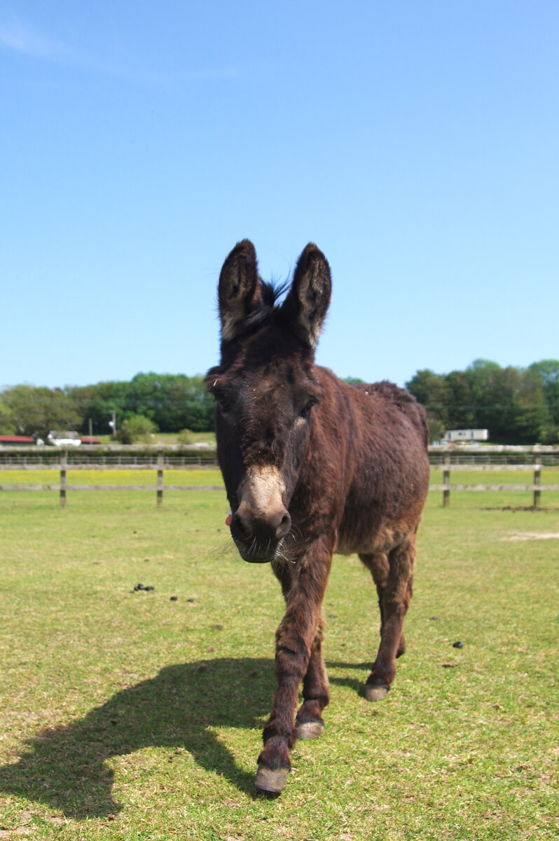 Cocoa Pops is a gorgeous dark brown donkey with a dark brown nose. He has lived with us for many years. He is confident, and loves coming up to staff to find out what they are doing each day. He’s very curious, quite cheeky and loves a cuddle!