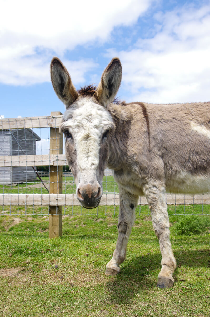 As you might guess, Daffyd is a lovely grey and white donkey from Wales who came to live with us in 2014. He’s friendly, calm, laid back and full of easy-going charm. He usually hangs out with his best friend Paddy O. When feeding time comes around, Daffyd is first to the hay!
