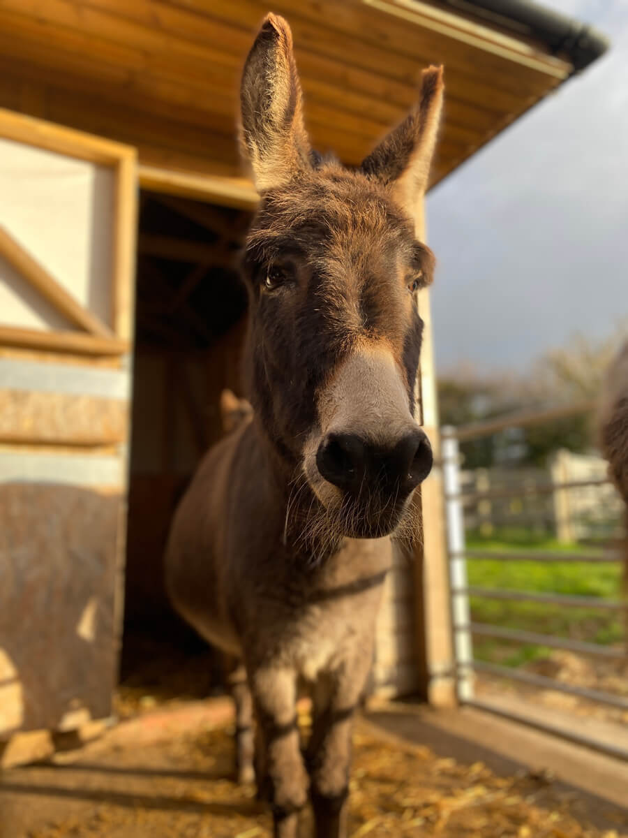 A handsome dark brown donkey, with a mane that sticks up like a mohican, Dave is headstrong, outgoing and loves being the centre of attention! Dave loves nothing more than a good cuddle and he follows staff everywhere they go. He leads the way when it's time to play.