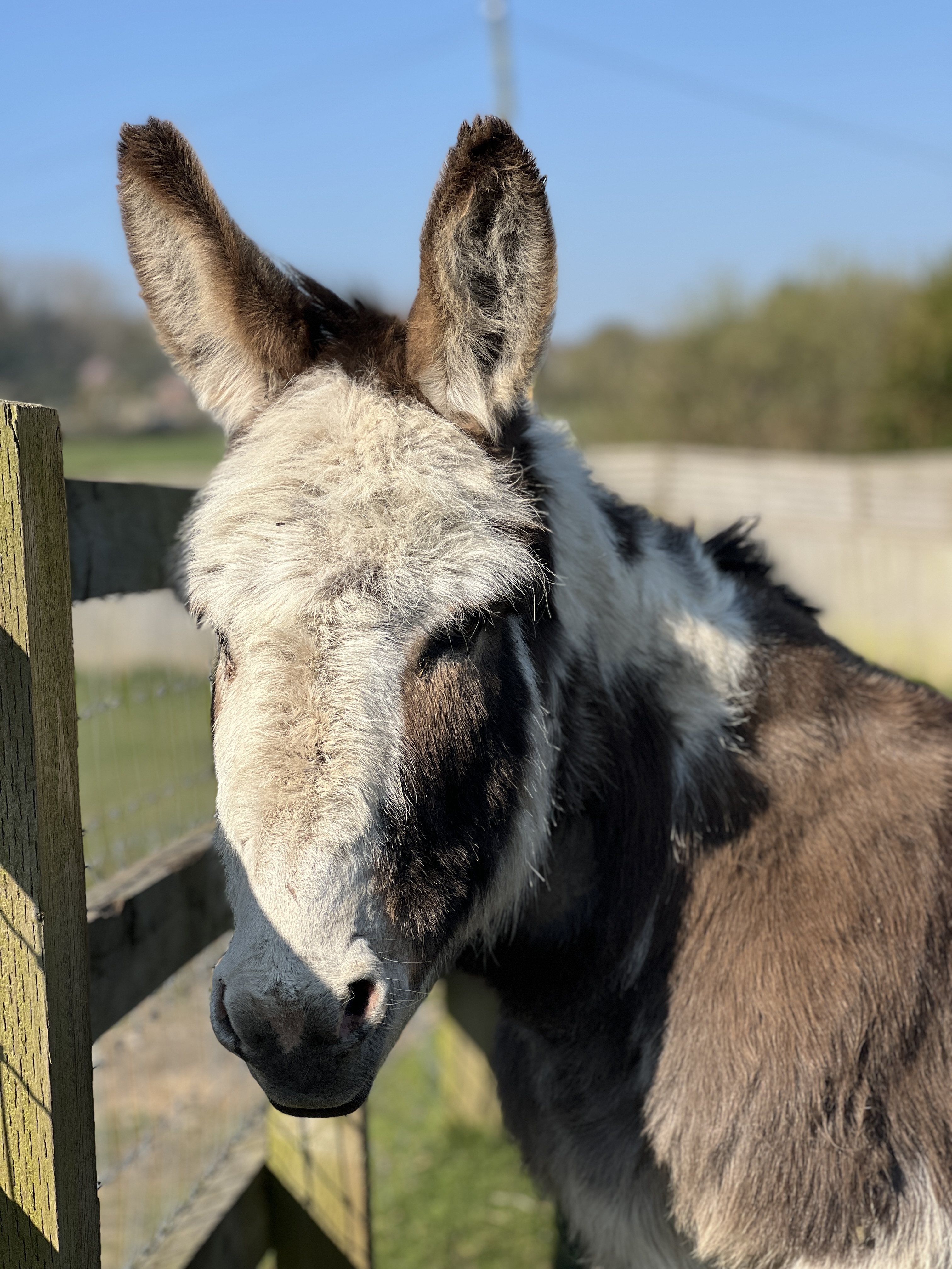 Fred is a smaller, colourful donkey with a heart full of charm! He can be curious, and very sweet.