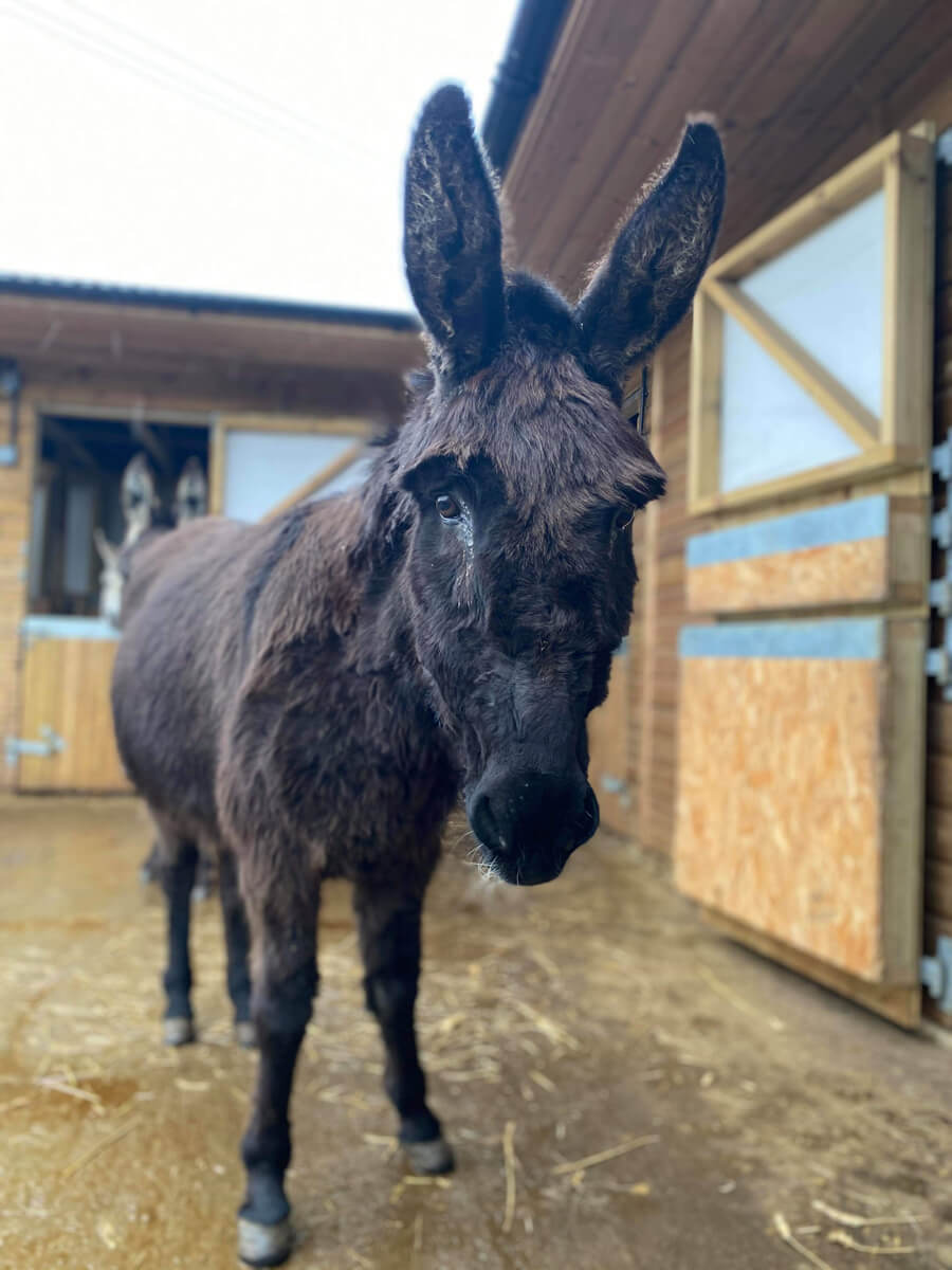 India joined us in 2017 from Wales, after losing grazing. Although a large and striking donkey, she was quite timid and shy when she arrived, but is becoming gradually more confident over time!