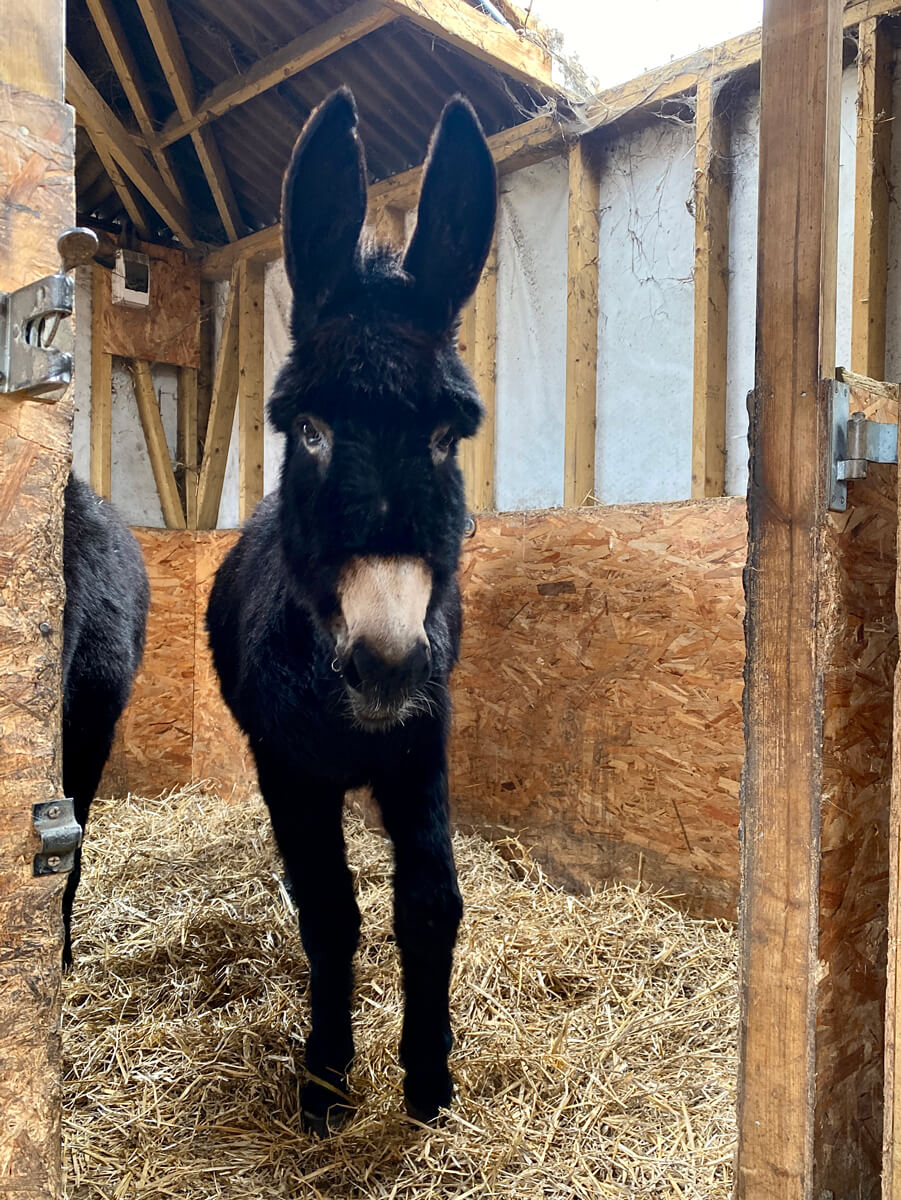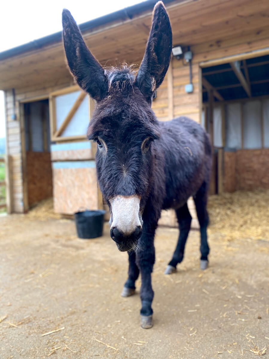 Jumpy is one of a group of 10 donkeys who were rescued from a slaughterhouse in France. One of the very tall, elegant ladies. Jumpy did not take long to trust us and show just how friendly and sweet she can be.