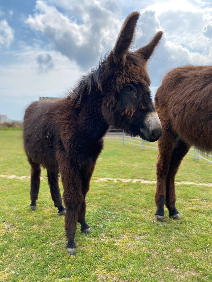 Koko is one of a group of 10 donkeys who were rescued from France. She was very shy when she first came her, but you wouldn't know it now! She's a very dark brown donkey who to roll in the paddock and sunbathe on a warm day.