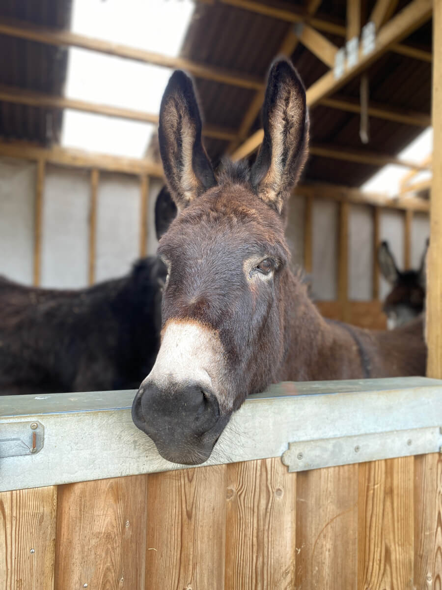 Larry is one of a group of 5 donkeys, who originated from Ireland. They had been abandoned, were malnourished and maltreated, but were rescued by a kind lady in Cambridgeshire. They sought a permanent home for them here on the IOW in January 2021. Larry is quite a shy boy who is slowly coming out of his shell and beginning to trust. He quite likes a little scratch when he is in the mood!