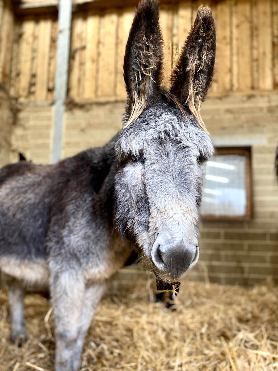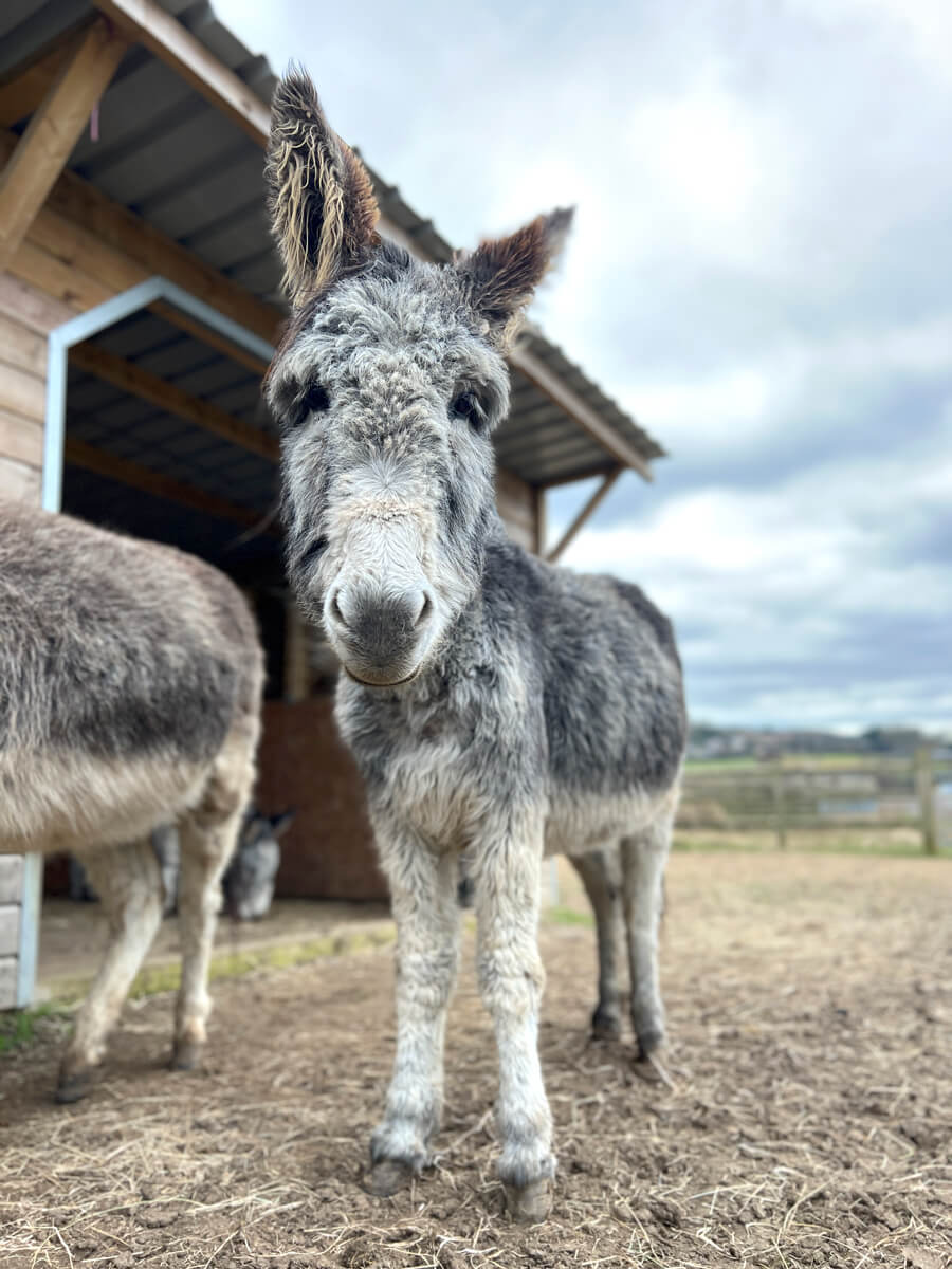 Marie Ange arrived to us in October 2021. She was an unwanted young donkey in France, who despite lots of effort, could not be found a home. She was very shy when she arrived but has continued to grow in confidence.
