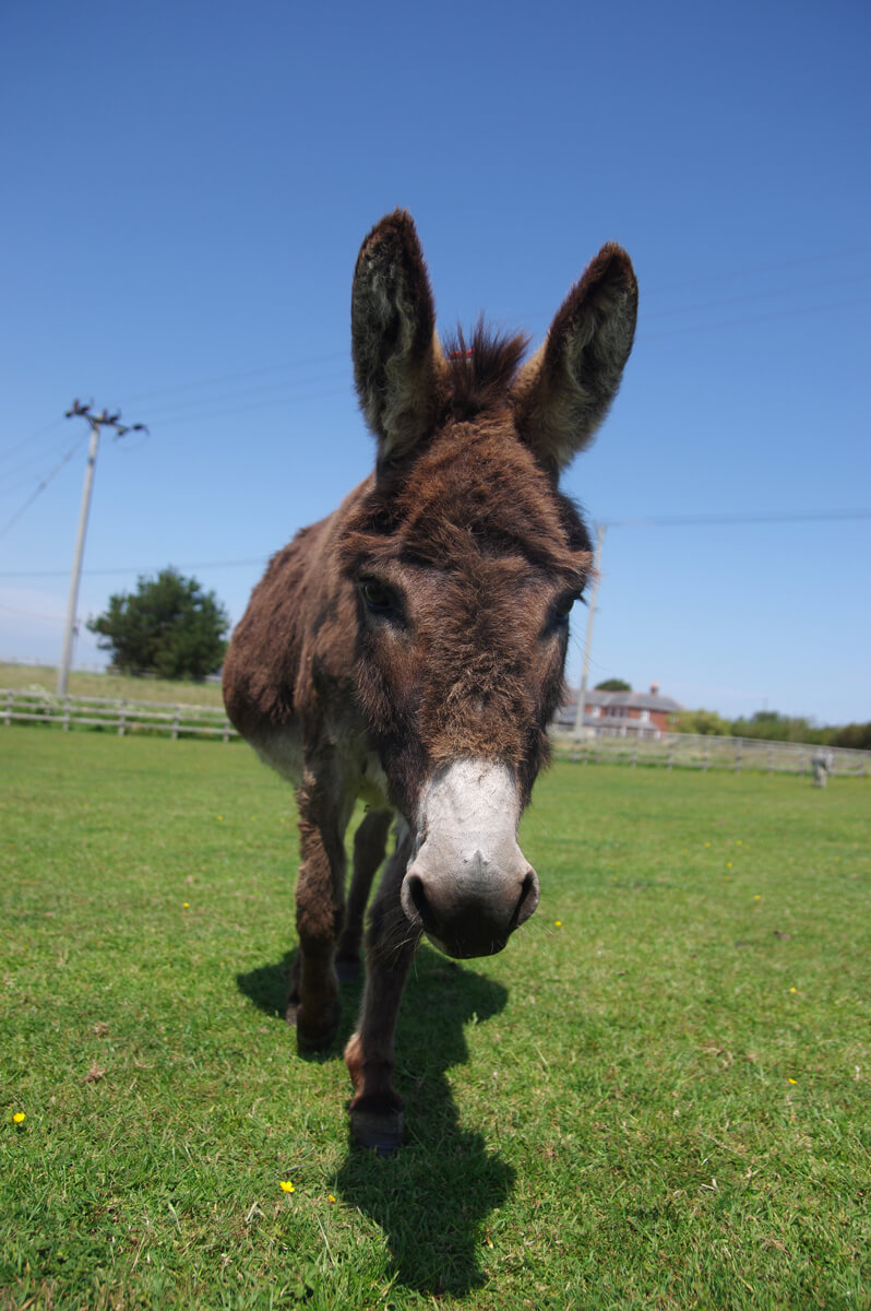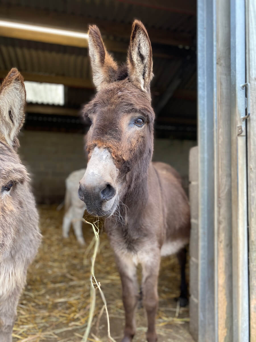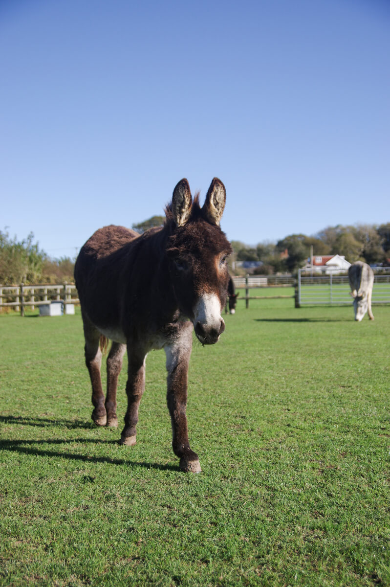 Moses is a beautiful brown donkey with a white nose, who came to the sanctuary in 2019. He only lived 2 miles away from the sanctuary, at a local farm. Moses was very well looked after at a local farm, but he was the only donkey and was in with a group of horses and ponies. He didn’t seem happy, and his owner asked if he could come to the sanctuary where he could make friends with other donkeys.