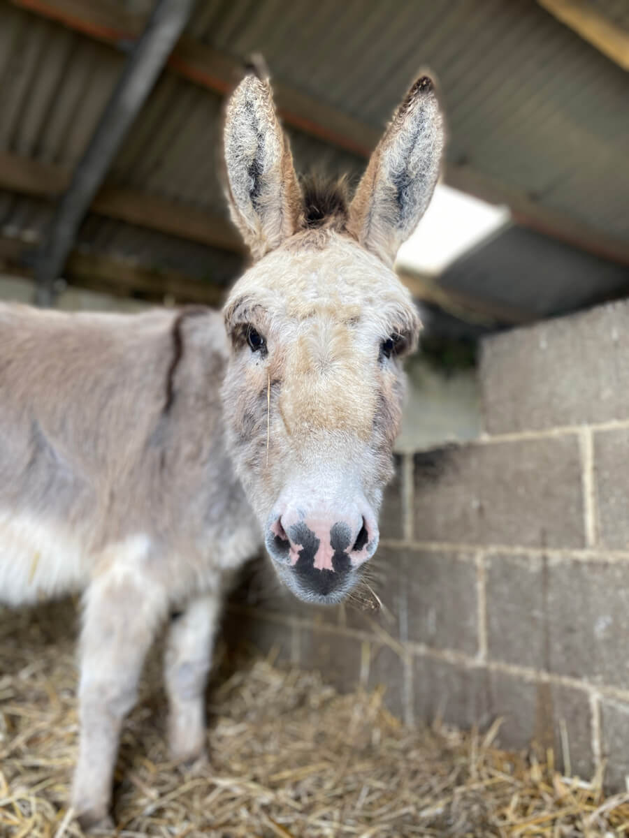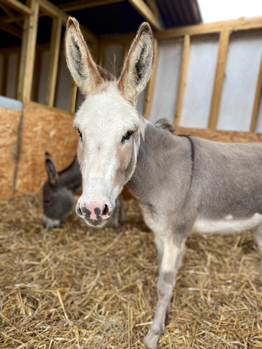Ruby was 2 years old when she arrived at the sanctuary in April 2018 when the field she lived in was sold. Ruby is sweet, affectionate and is inseparable from Olivia. She is a beautiful donkey inside and out.