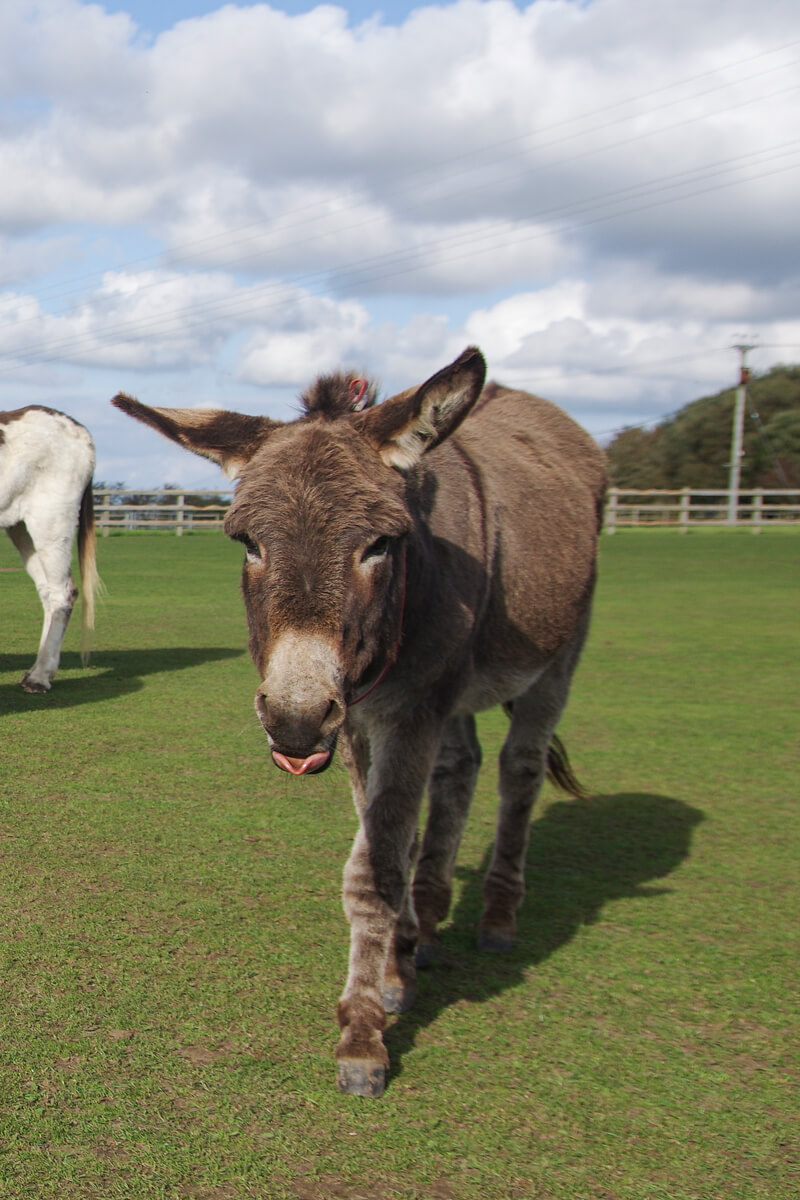 Thomas came from the Island village of Cranmore in 2016. He was very frightened when he first arrived at the sanctuary, but he soon settled and is now very confident. He is a lovely donkey who enjoys life here at the sanctuary, particularly playing with his friend Major. His favourite trick is to stick his tongue out and flap it up and down!