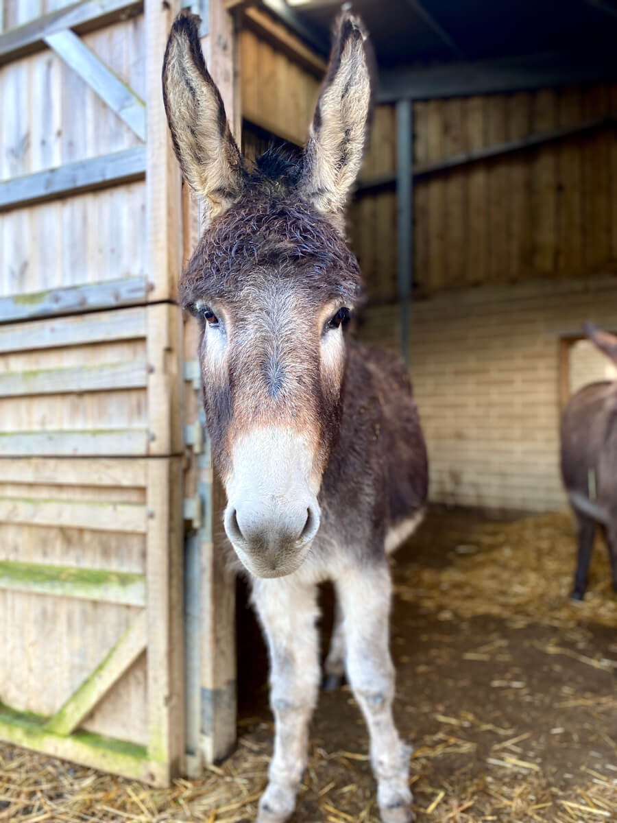 Tim is one of a group of 5 donkeys, who originated from Ireland. They had been abandoned, were malnourished and mistreated, but were rescued by a kind lady in Cambridgeshire. They sought a permanent home for them here on the island in January 2021. He is confident enough to want to be around you and have some affection but he’s still a little shy and cautious.
