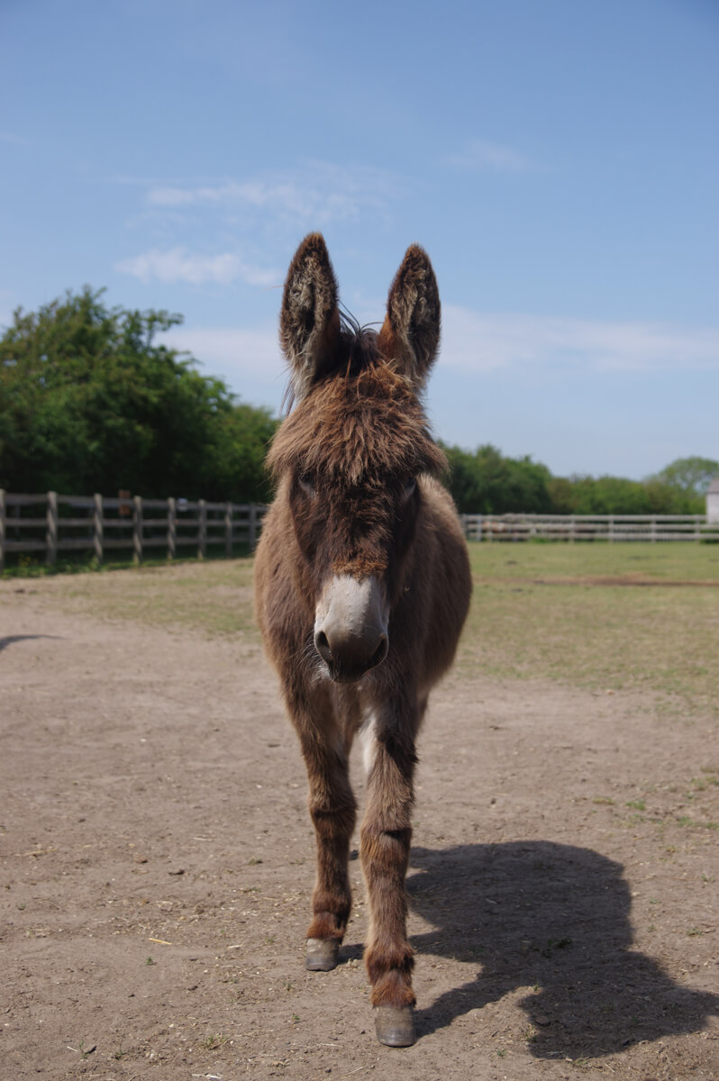 Toby arrived with a group of donkeys, including his mum Tabby, from Wales in 2015 who lost their grazing. He was just 6 months old but has grown up here and is a gorgeous, but slightly timid donkey.